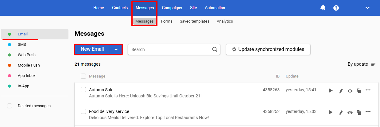 - Go to Messages → Messages → Email.