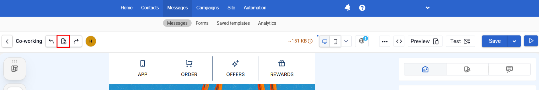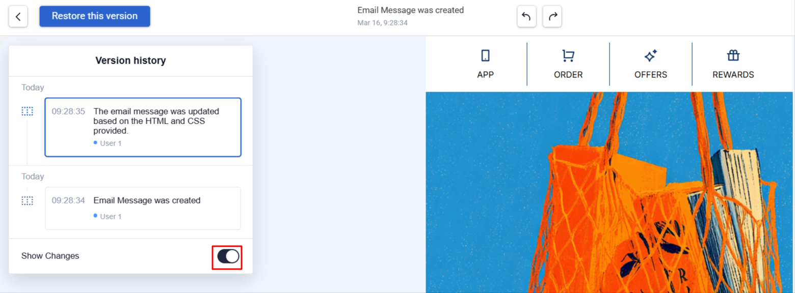 - Click the Version History icon in the email template.