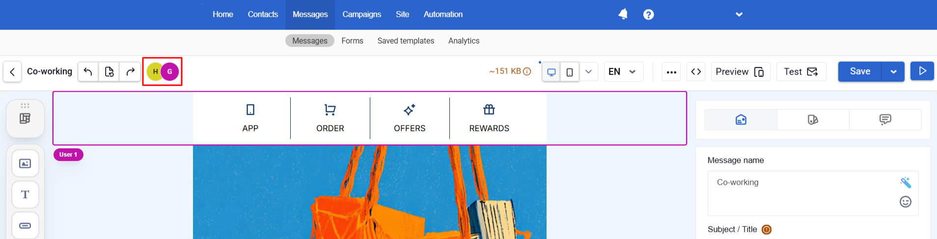 Collaborative features allow team members to work on the same email template simultaneously, reducing the need for duplicate copies, screenshots, and coordinating edits in chats.