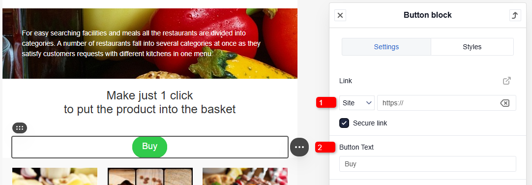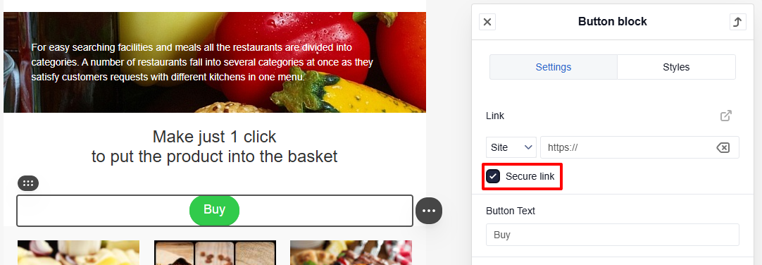 Activation is not required for regular promotional links. After enabling this feature, the Secure link checkbox will appear in the button settings.