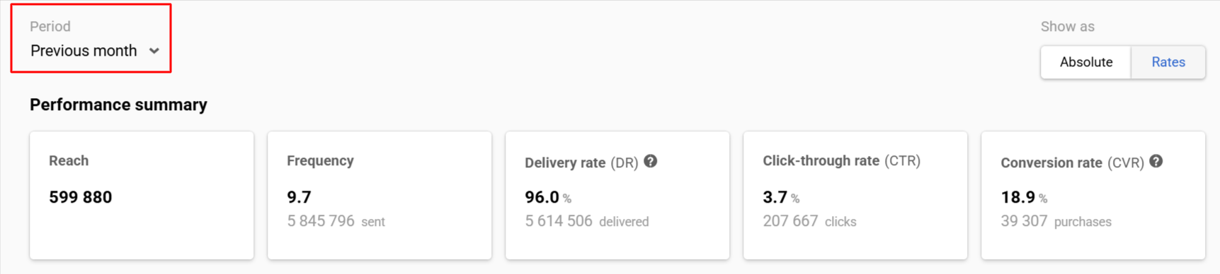 - Period: Define the time range (e.g., current or previous week) for analyzing your campaign data.