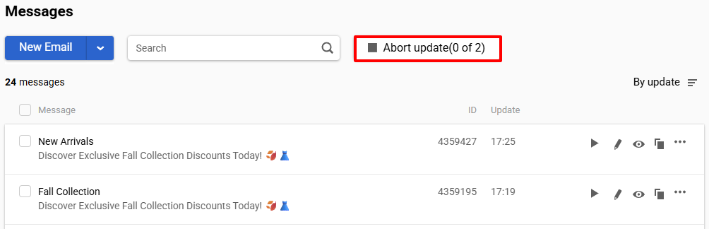 If you don’t run a bulk update, the system still applies the changes when you open each email in the editor. In other words, after you edit a synchronized module, the new version automatically loads into emails that use that module.