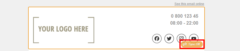 After you save, the Sync Off label appears in the bottom-right corner of the module. It means the module is synchronized, but the system hasn’t applied the changes to emails yet.