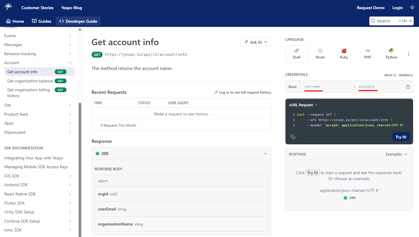 - Go to the https://docs.yespo.io/reference/getaccountinfo-1 page.