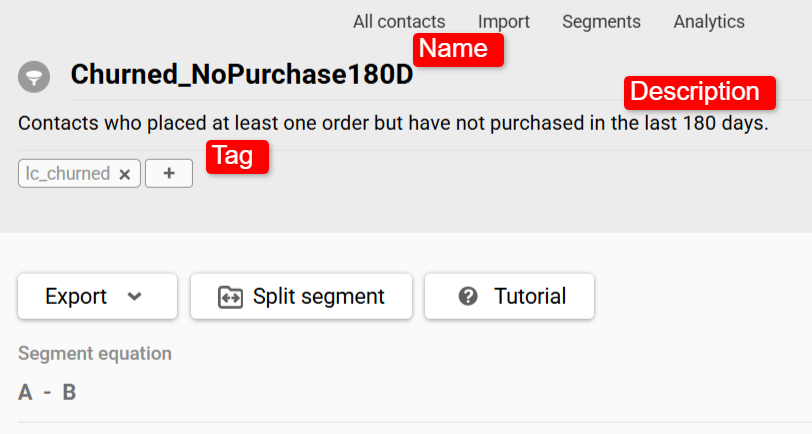 Avoid vague lifecycle terms used interchangeably across your account. Define once what each stage means — for example, Active = placed an order in the last 30 days — and apply that definition consistently. Document the definition in the segment description so it's visible to everyone working in the account.