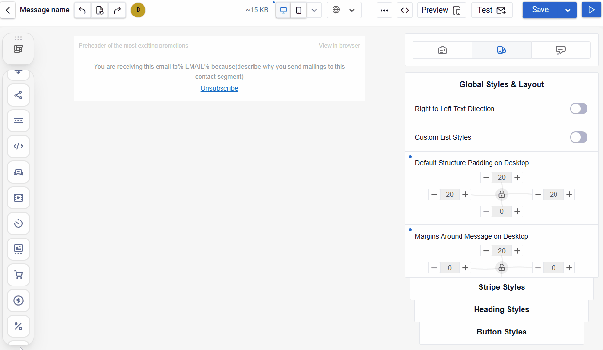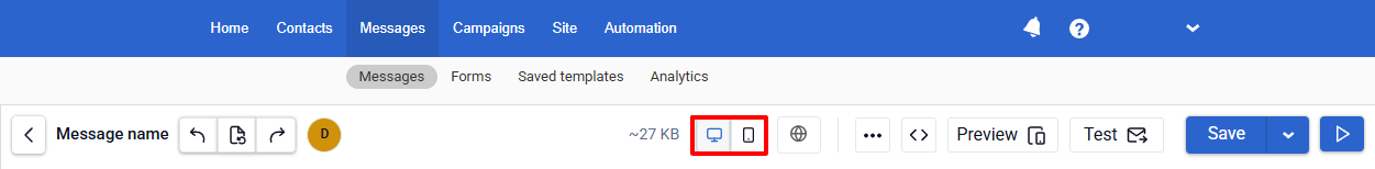 We show all settings for the desktop version. In the mobile version, configure them in the same way. Use the buttons on the Email Management Panel to switch between versions.