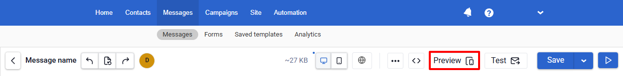 NoteWhen you change the data source, the changes are not applied in the editor. To view the actual message, select the View message icon on the top panel.
