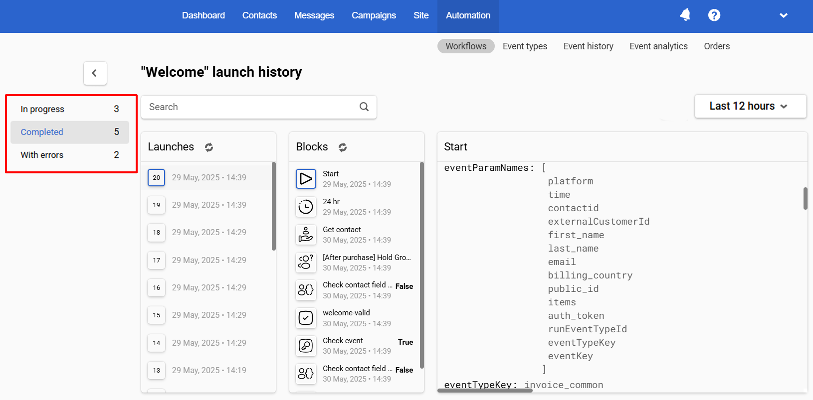 Track statistics on the number of workflow launches and check for errors in its blocks.