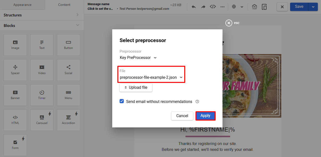 Creating Email Using Preprocessor