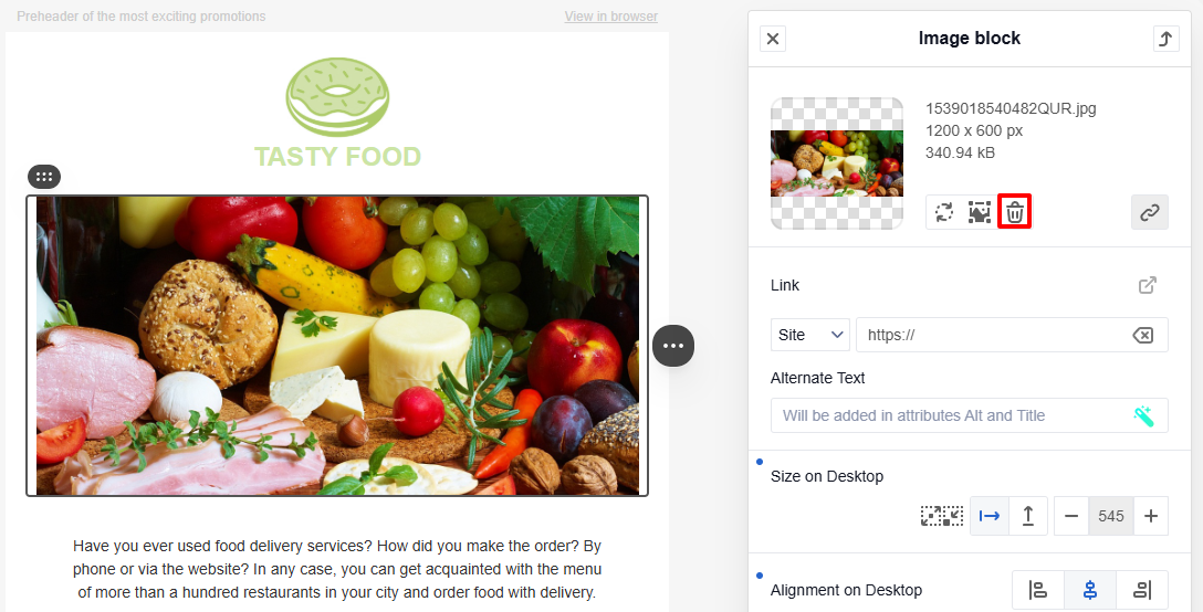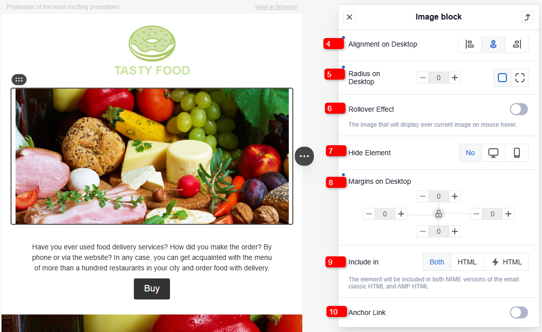 - Hide element — hide the image in the desktop or mobile version of the email.