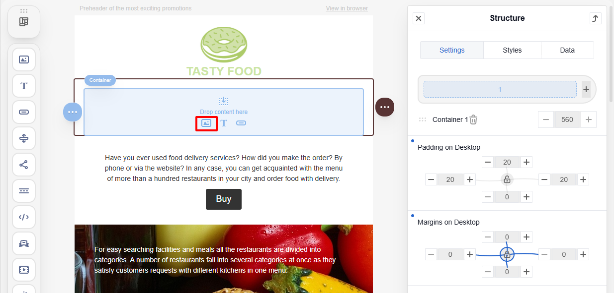 - Margins (desktop) — set the distance between the image and other elements.